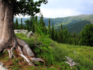 forest, winter, trees, viewes, branch pics, rays of the Sun, traces, snow, Field