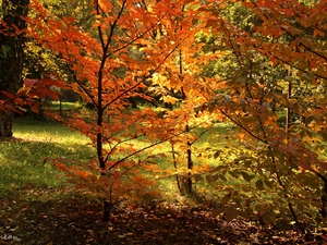 Sky, dawn, grass, morning, Bushes, trees, autumn, viewes, forest, Flowers, clouds, Sunrise, sun, Field, Fog