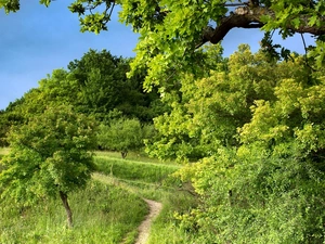 viewes, winter, rays of the Sun, Sunrise, Mountains, trees