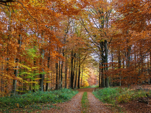 Way, trees, Sunrise, viewes, spreading, River, rays