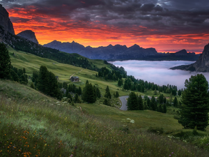 viewes, Fog, morning, White frost, angler, trees, winter, snow