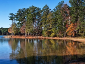 lifebuoy, lake, trees, viewes, forest, Observation Deck
