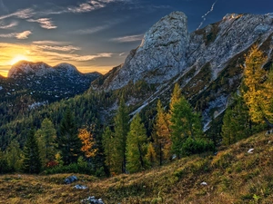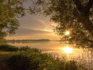 viewes, Stool, autumn, Pond - car, Leaf, trees, Park, wall