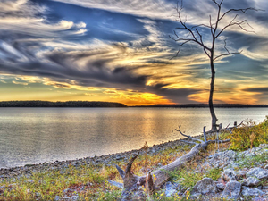 Hurdle, Sky, trees, clouds, Great Sunsets, wall, viewes
