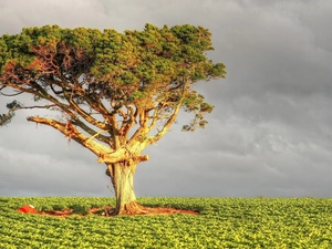 clouds, Great Sunsets, viewes, Meadow, trees