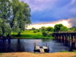 forest, waterfall, trees, viewes, green ones, rocks