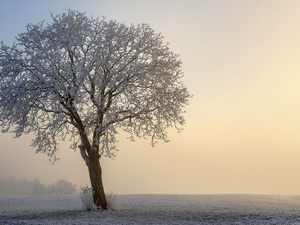 Way, trees, Field, medows, Sunrise, clouds, Fog, morning, grass