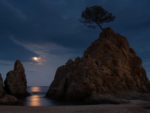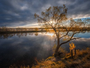 trees, viewes, Fog, Bush, lake, snow, winter, Way