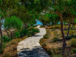 Way, forest, heather, trees, heath, The Hills, clouds, viewes