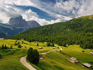 viewes, pine, People, autumn, Fog, trees, forest, Way