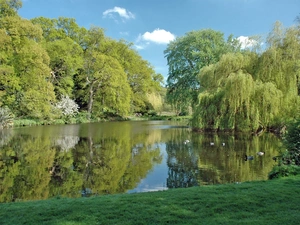 Way, trees, day, viewes, forest, sunny, light breaking through sky