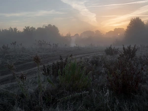 trees, winter, River, White frost, viewes, snowy