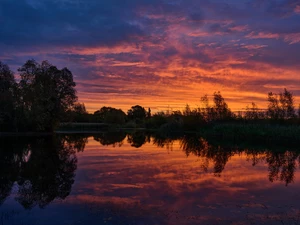girl, trees, graphics, viewes, snow, River, bridge, winter