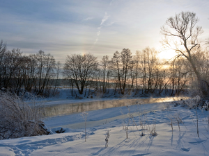 State of California, The United States, Yosemite National Park, winter, viewes, forest, Mountains, trees, Merced River